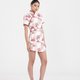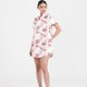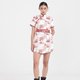 Toile de Jouy 朱伊纹上海图案包含了上海最具特色的旅游景点。这款长及大腿的宽松连衣裙配有内置垫肩,呈现出大胆别致的外观。 包括一条相配的粗腰带,以突出身体的腰线。 短袖、弧形下摆、前面板滚边和玉钮装饰等细节也增强了时尚感。 中心背面标志性金色拉链开口。