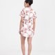The toile de jouy Shanghai graphic comprises the most signature attractions of Shanghai. This thigh-length loose fit dress has built-in shoulder pads to present a bold and chic look. A matching thick belt is included to highlight the waistline of body. Othe details such as short sleeves, curved hem, front panel piping and jade decorations also enhance the stylish touch. Center back signature golden zipper opening.