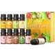 **【应用广泛】**1套包含10种甜美果香 (芒果、柠檬、椰子、青苹果、樱桃、草莓、香蕉、菠萝、桃子和西瓜),将带来快乐、平衡情绪并减少疲劳;精油也适用于芳香扩散器、加湿器、按摩/身体油、DIY 蜡烛、肥皂、沐浴球!