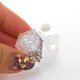 It is a cube-shaped clip type earrings with confinement a small cube with crystal resin.