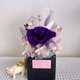 选用单朵日本永生玫瑰花,搭配其他永生花或干燥花,衬托主角的美丽。方形小盆器放在办公桌或电视柜都很适合,也可以作为开幕、居家乔迁、生日礼物!