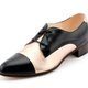 Derbies德比鞋,又名为Lace-ups,德比鞋特点是鞋舌与整个鞋面采用一张皮革,两片鞋耳之间用鞋带固定出一些间距,这样便于调节松紧。德比鞋是男士必备的重要鞋款,但今天它也绝对是女士必备的鞋款。品牌想以多元的设计去吸引客人,不会把产品LOGO化。这款背后有T型造型,即使有LOGO它也会是设计的一部分,带给客人一种惊喜感。