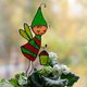 Decorative ornament for a flower pot. Elf with wings and a flashlight. This is a real stained glass window. The face is applied with paints and fixed by firing. Those. the paint will not wash off and is not afraid of water. "Legs" made of copper wire 13 cm. Carefully insert into the flower pot so as not to damage the roots of the plant.