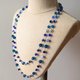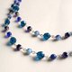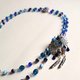 各式各样色彩与形状的捷克珠饰,如同鲜艳透明的卡普里蓝、柔和不透明的蓝色,以及垂挂在扇形坠饰上的扁平泪滴状钴蓝色,错落有致地散布其中。