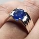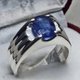 天然 3.5 克拉深蓝色蓝宝石男士戒指纯银 925 手工戒指