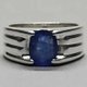 天然 3.5 克拉深蓝色蓝宝石男士戒指 925银手工戒指