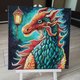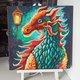 龙,原创油画,拉伸画布,尺寸为 30 厘米 x 30 厘米,由当代拉脱维亚艺术家 Inna Bebrisa 手工制作。
