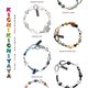 材质包含:白水晶、蓝纹石、白玉、染色玉、贝壳珠、草莓晶、印加玫瑰、三角玛瑙、医疗钢珠、医疗钢圈、 Rondel 珠、玻璃珠与 Miyuki 珠。