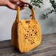 - 时尚百搭的芥末黄纯棉绳钩织, 融合设计简约的祖母方格花样, 搭配真皮包覆手提提升使用舒适感。
