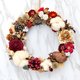 此款花圈设计师特别挑选红金色系各种干燥染色果实与手作松花,层层叠叠,非常适合冬日圣诞佳节的氛围,甚至放到过年也无违和感,喜气的红金色系,开运吉利又招财!
