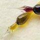 ◤内容物尺寸: 玻璃沾水笔身约-16cm / 墨水- 芥末黄 / 红酒紫