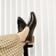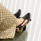 2.鞋型简洁俐落设计,沿条搭配拉丝木跟,时尚高雅。