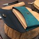 我们所有产品可看见的边缘都会经过处理。先经过基本的修正打磨,再反复地上色及抛光,直到光滑平整后打上一层蜡作保护。单是这个过程几占上整个制作时间的三分之一。颜色方面,我们一般都是选择与主体(封面)皮革颜色最贴近的作为默认。
