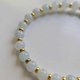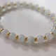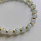 ►细润牛奶白冰细细的圆珠带上几抹绿飘花,搭配14K包金的格珠,整圈上手显得气质迷人~