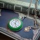 The leather is squeezed out and tailored into a three-dimensional shape to completely wrap the pocket watch.