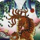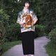 采用了紧密的平纹涤纶面料,薄而不透,日常很好打理。每一个裁片都是单独的数码印花再去对位裂做,颜色鲜艳,图案清晰不褪色。特别定制目目玉logo高品质塔罗贝扣。艺术家原创九尾虎图案,灵感来源于《山海经》陆吾。