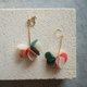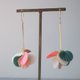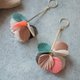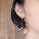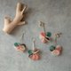 左右两耳总共使用20片的花瓣,每一个都是创作者手工制成。透过每个弯曲角度不同的花瓣,营造出耳环整体的丰富感,是一款能够享受叠色及光影变化带来层次变化的软陶耳环!