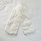 精致的蕾丝上,编织着可爱的花朵与缎带图案,细腻的线条勾勒出立体感十足的纹饰。我们将这份精巧的蕾丝,轻柔地覆盖在透明感十足的欧根纱上,不加以过多修饰,保留蕾丝最纯粹的姿态,精心打造出这款娇美而优雅的手套。