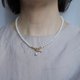 Wanju Pearl 严选大小均匀的圆润淡水珍珠串联而成,每一颗都散发着柔和的光泽,温润而典雅。别致的金色 OT扣,不仅方便穿戴,更为整体设计增添了一丝复古的精致感。扣环下方垂坠一颗小巧的珍珠,随着身体轻轻摇曳,更增添活泼感~