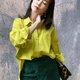 格纹压印艳黄衬衫,四季皆可穿,亮眼缤纷,free size超舒适