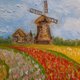 **荷兰油画。郁金香田墙艺术。磨坊油画。荷兰绘画。**