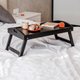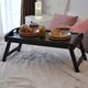 It's size is 62x34 cm, height is 8 cm if folded and 30 cm, if used as a table.