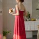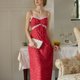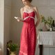 Gwendolyn 优雅红色波点系带吊帶洋裝