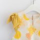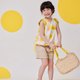 - 舒柔木浆纤维布料,内里选用60支棉透气, 里外织法布料触感柔细舒适 极佳亲肤性, 空气泡泡澎澎造型,双肩蝴蝶结装饰, 独家奶霜落日图案设计 浪漫且奇幻的仲夏之旅