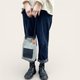 这款束口袋采精巧的长形设计,皮革制开口宛如弯弯笑脸。