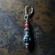 这是一款将老西藏绿松石、金赤威尼斯珠与银珠串连而成的单耳耳环。