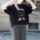 👉衣服颜色黑色搭配奶黄色印刷。