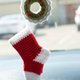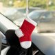 Christmas stocking and wreath is a cute accessory on the car mirror. It is small enough to not be distracting but still noticeable. The crocheted suspension does not knock on the windshield while driving and is safe during emergency braking.
