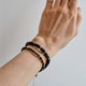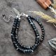 以黑玛瑙与 925 纯银打造的双圈手链。珠子尺寸介于 4 至 6 毫米。所有配件均为 925 纯银。附有银质延长链可调整长度。手链的两端均配有单一扣环。宝石来自印度。 每件商品皆附赠丝绒礼物收纳袋。