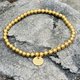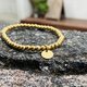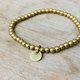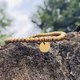 简单的黄铜珠珠,里面是蚕丝线,上面可以搭一个黄铜的圆吊牌,可以刻上你喜欢的英文字母或数字,简单大方,任何场合都很好搭配