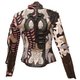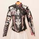 这款夹克缀饰着凸起、压花及缝制的元素,宛如椎骨、肋骨与抽象的“有机”形状。