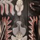 黑、灰、白、粉红的色彩组合,营造出皮革、金属与生物组织交融的视觉效果。