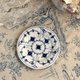 优雅的小碟来自丹麦着名的皇家哥本哈根(Royal Copenhagen),其标志性的手绘蓝花图案是经典的设计。背标记有Royal Copenhagen 绿色皇冠与标志,这是皇家哥本哈根的标准印记,常见于19世纪晚期至今的产品;还有蓝色三条波浪纹,代表丹麦的三条水道(大贝尔特海峡、小贝尔特海峡与厄勒海峡),这是Royal Copenhagen所有瓷器的标志之一;数字 “182”系列编号(Shape Number),用来识别该款碟的设计。