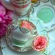 搭配优雅的湖水绿,是一组清爽宜人又浪漫的花茶杯