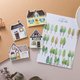 凯若森林小镇/ 小房子II 梦想住在森林里的小屋, 尖尖的或平平的屋顶都很好, 从窗户看出去花影摇曳,有院子让孩子奔跑嬉戏。 心里想的,于是变成纸上一栋栋小房子, 那一栋栋的小房子又变成一个小镇... 凯若森林小镇,邀请你/妳一起带着梦想来入住 :) -4栋小屋各1张,共4张 -约4.5*5CM(手剪贴纸,每张都有点不一样唷!) -雾面贴纸 产地/制造方式 台湾设计/印刷
