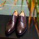 此款采用最基本的德比鞋配置,鞋面仅有横线装饰,整体比例分配得宜,最基本的皮鞋样式之一,不偏不倚的正式度,几乎适用于所有场合,在不习惯外观太过于素面的状况下,这双会是相当棒的选择。如果是第一次购买皮鞋,并且希望发挥最大实用性的话,这是绝对不会出错的入门款式。
