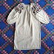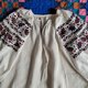 这件可能为 Chernihiv 地区20世纪初期 (约1920-30年代) 缝制的连身衣为100% 手织大麻纤维、全手工缝制,以乌克兰人视为最珍贵的红、黑两色刺绣,红色象征爱;黑色则象征土地丰收所带来的繁荣 (意指乌克兰肥沃的黑土) ,肩至袖上环绕着成串的可爱橡实,下摆则有细密的镂空蕾丝 (white on white cut work)