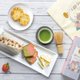 草莓与抹茶双色,全新口味变化 ,并添加杏仁粉,兰姆酒等,风味变化多层次。蛋糕上淋上白巧克力,再妆点草莓及开心果等,视觉系糕点吸睛破表,视觉味觉双享受!!