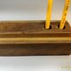 - 老家具拆下早期台湾柚木手机座(C) 原本以为是乌心石木,但锯切下去的味道不像,才发现是柚木。 外观尺寸 :长13cm X宽5.8cm X 高约4cm,笔孔直径14mm 手机槽宽1.4厘米,深度约0.9厘米 早期老家具拆下的木材, 老材稳定度