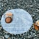 “夏日风情”圆形皮革地垫,设计灵感来自夏季的清爽与自由,蓝灰色的底色宛如海洋与天空的融合,带来视觉上的清凉感受;配以民族花纹,增添异域风情,展现夏日轻盈与活力,为居室空间注入自然的清新气息和独特的艺术魅力,仿佛置身于一个充满夏日时光的度假胜地。