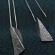 The rectangle shapes of these long stem earrings were crafted from a silver strip, which has been textured on surface with natural materials (wooden tree bark, straw, dry teak tree leaves, etc). The silver strip was thinned to roughly around 0.5 mm thickness by passing it into a rolling mill together with various materials that left the surface textured with beautiful, deeply embossed, natural patterns.