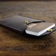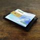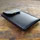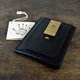 背面可夹放钞票 / 侧面红色植鞣革装饰手工磨边处理