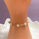 5.5-6.5mm天然淡水珍珠呈现出美好的冷白光炫彩,颗颗正圆透亮,骨子里透出冷月光的气质。纱织小姐将他们按秩序排列,间隔搭配配S925银14K注金配件,并用弹簧扣连接,含延长链长度约15.5+3.5mm,精致感立现,给你的美丽轻松加分。