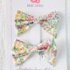- 英国LIBERTY FABRICS蝴蝶结手工儿童波波发夹,是女宝宝的必备时尚配件,独一无二的英式浪漫印花,搭配LIBERTY同花色洋装或衣裙整套穿搭,提升时尚整体感!