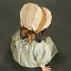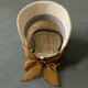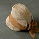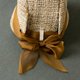 凉爽透明的丝带在柔和的肉桂麸微风中摇曳。复古设计的儿童草帽。外层材料由 100% 手工编织亚麻制成,属于透气材料。