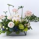 作品特色:选用进口高阶拟真花材,较不易沾染灰尘,以特级拟真花材手工制作而成的植栽花饰,附加扩香试管,环境美化同时带有芬芳的香气。